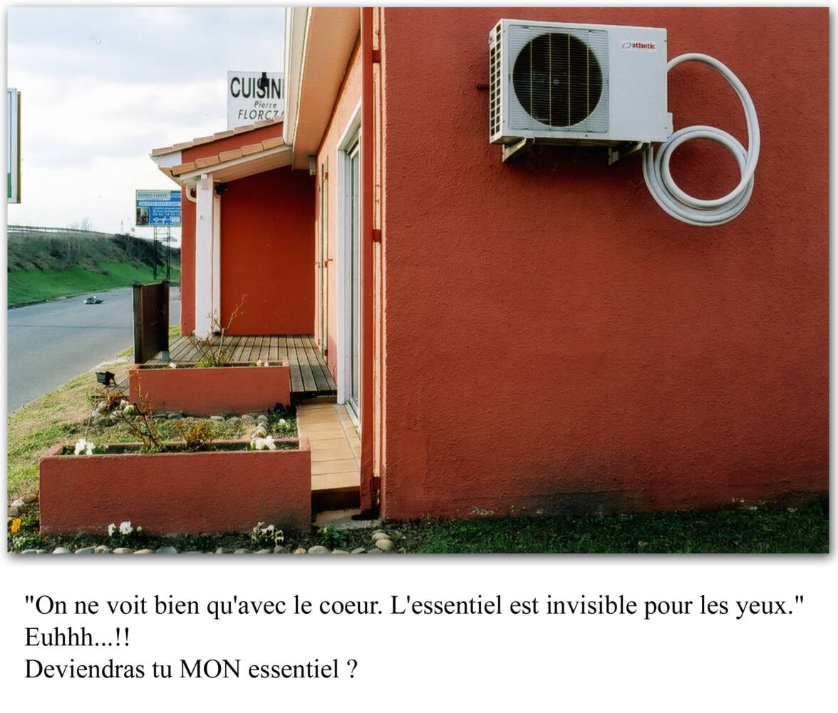 Décalage entre texte et image, certes mais aussi décalage entre rêve et réalité, idéalisme amoureux et solitude des modes d’habitation