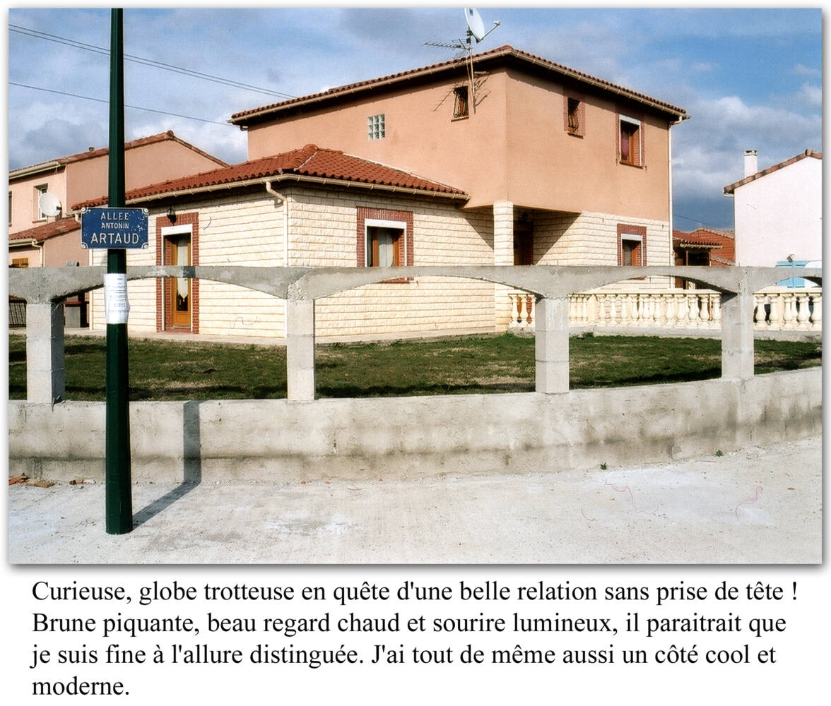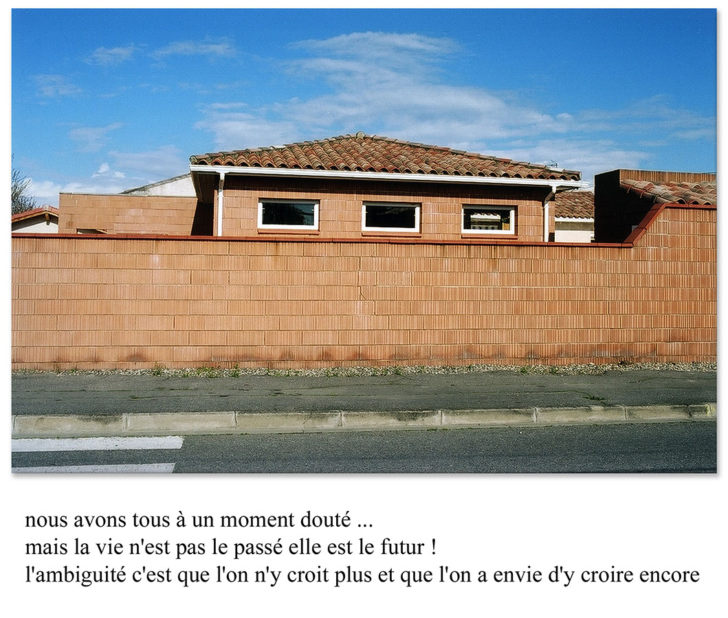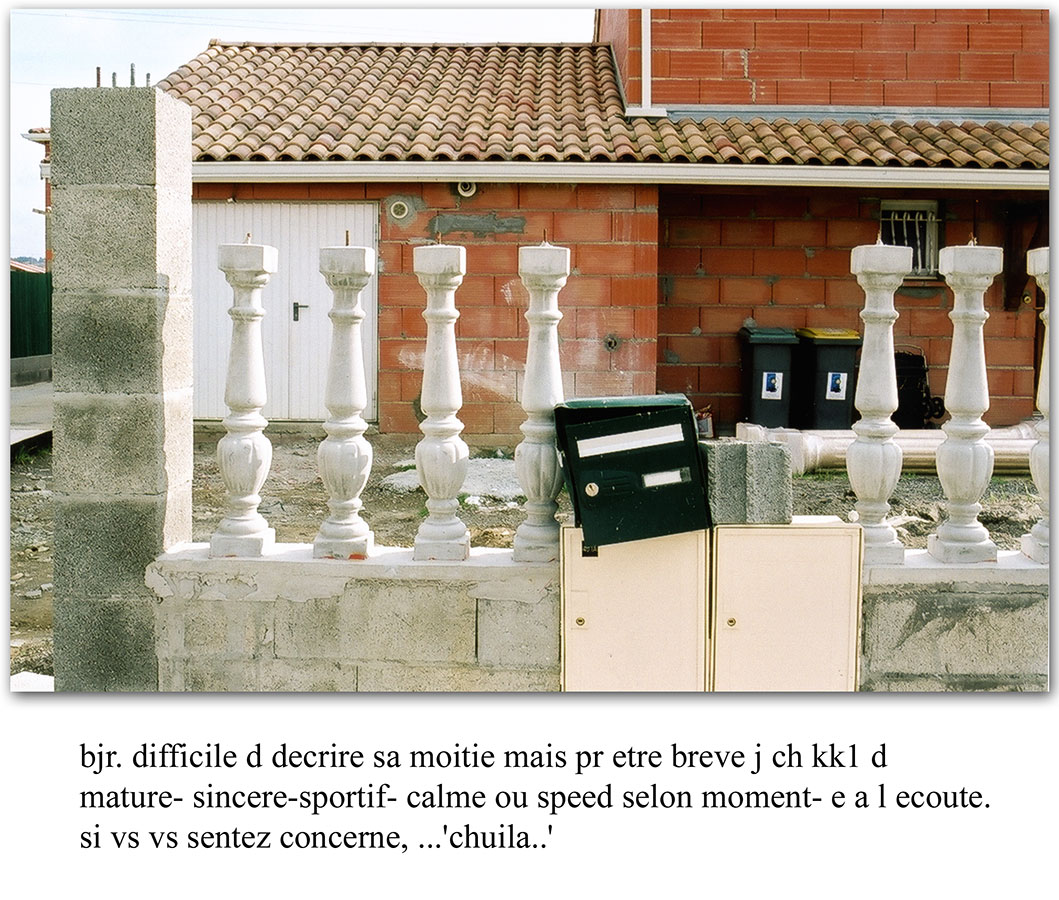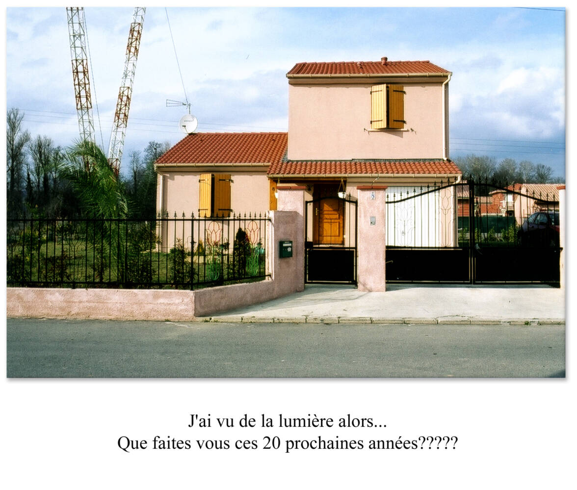 La réalité ce sont les photographies de pavillons de banlieues des zones périurbaines, symbole d’un mode de vie, de réussite sociale et modèle d’une société de consommation.